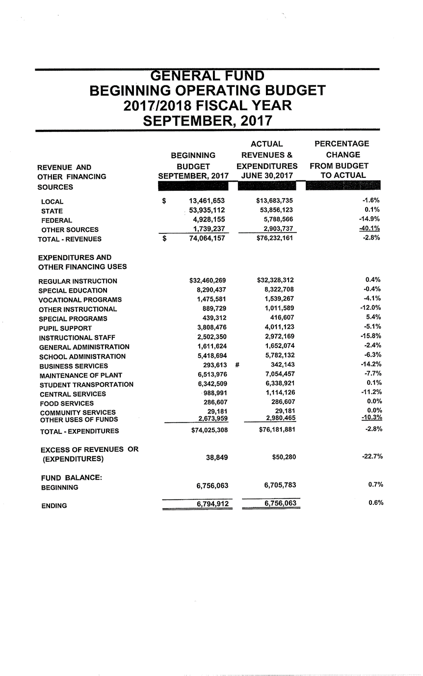 Vernon Travis reported from the Finance Committee meeting that Tim Ward, Finance Director discussed the Budget for the 2017-2018 school year and recommended the budget to be placed on the September 12, 2017 agenda to be approved. On motion of Vernon Travis and seconded by James Seaman, the Board approved the recommendation.