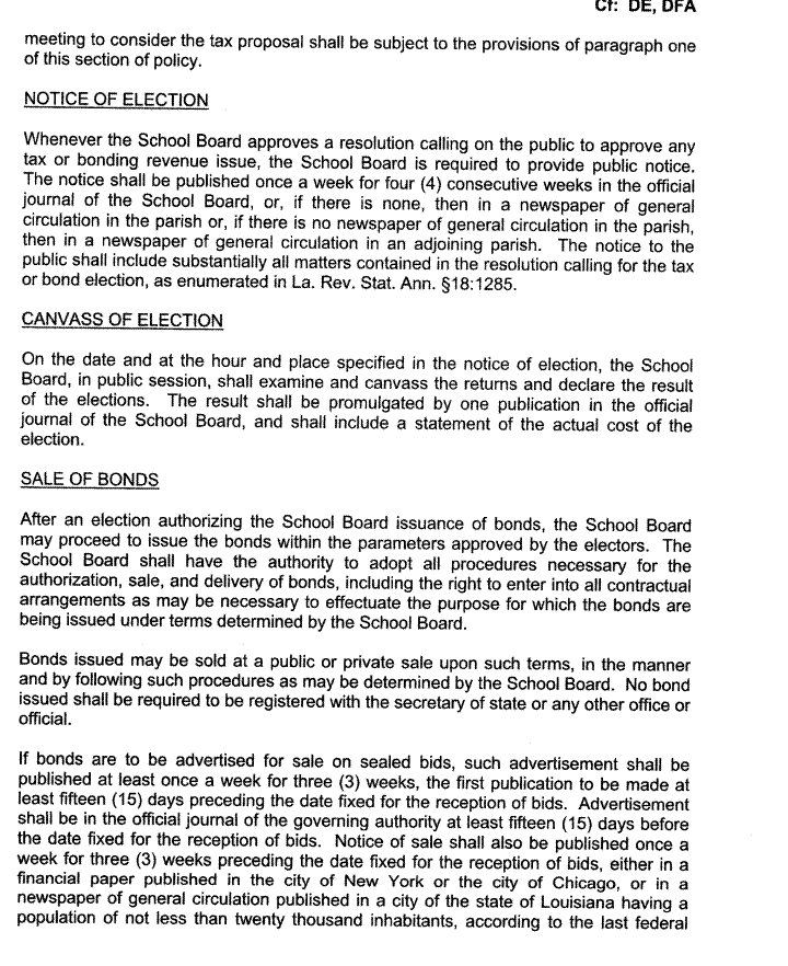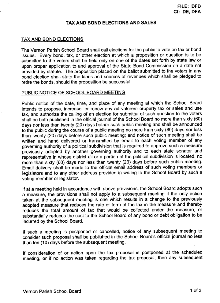 1) FILE: DFD - Tax and Bond Elections and Sales