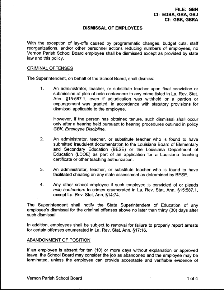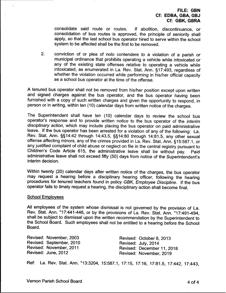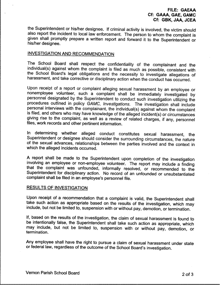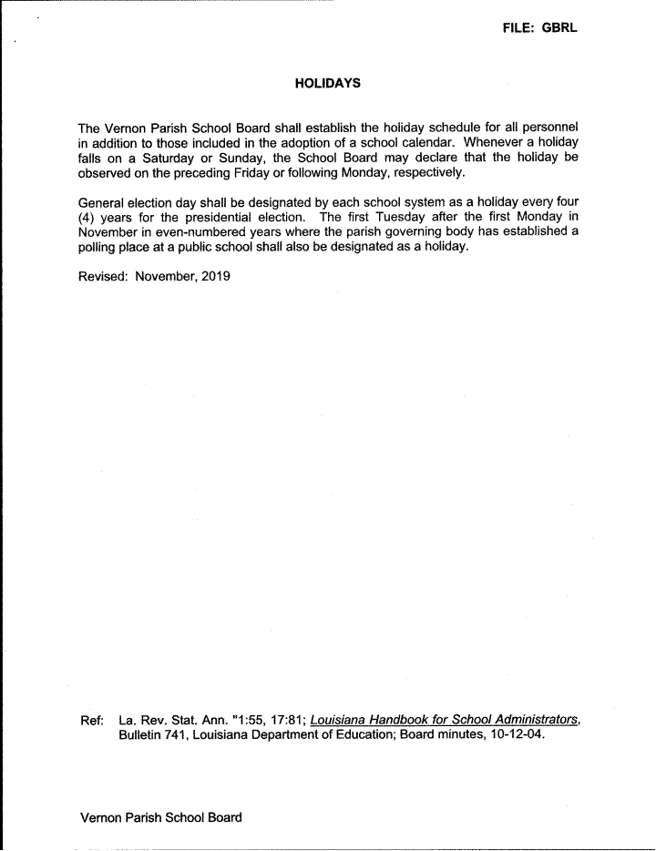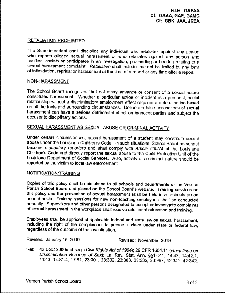 Finance Director, Tim Ward discussed the updates for the Vernon Parish School Board policies to the Board.