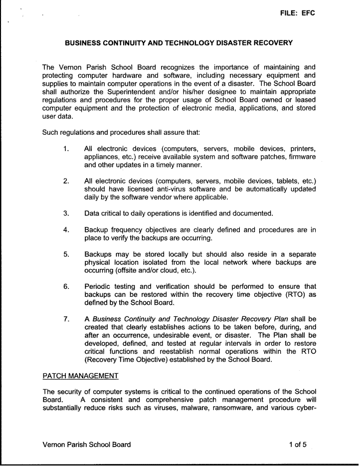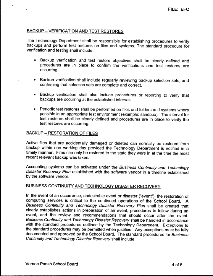 5) FILE: EFC – Business Continuity and Technology Disaster Recovery