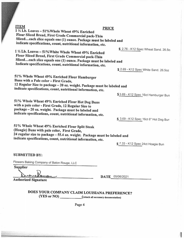 Director of Finance, Tim Ward presented the bids received for milk, bread and juice.