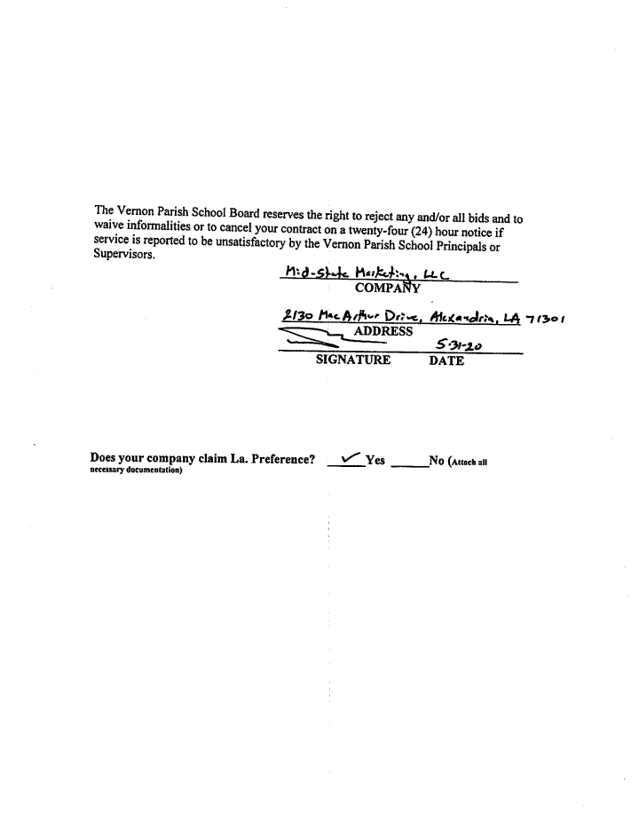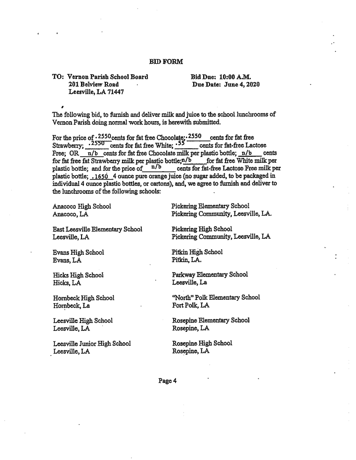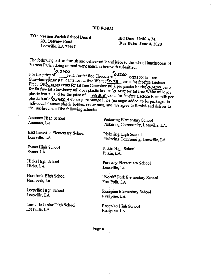 Director of Finance, Tim Ward and Mike Holt, Architect for the Vernon Parish schools’ repairs, discussed the process of bidding for the Hicks High School storm damage repair and replacement. Mr. Holt informed the Board that four companies initially signed up to interview for a bid and at the last minute only one company turned in a bid. The only bid is from Pat Williams Construction Company in Leesville.