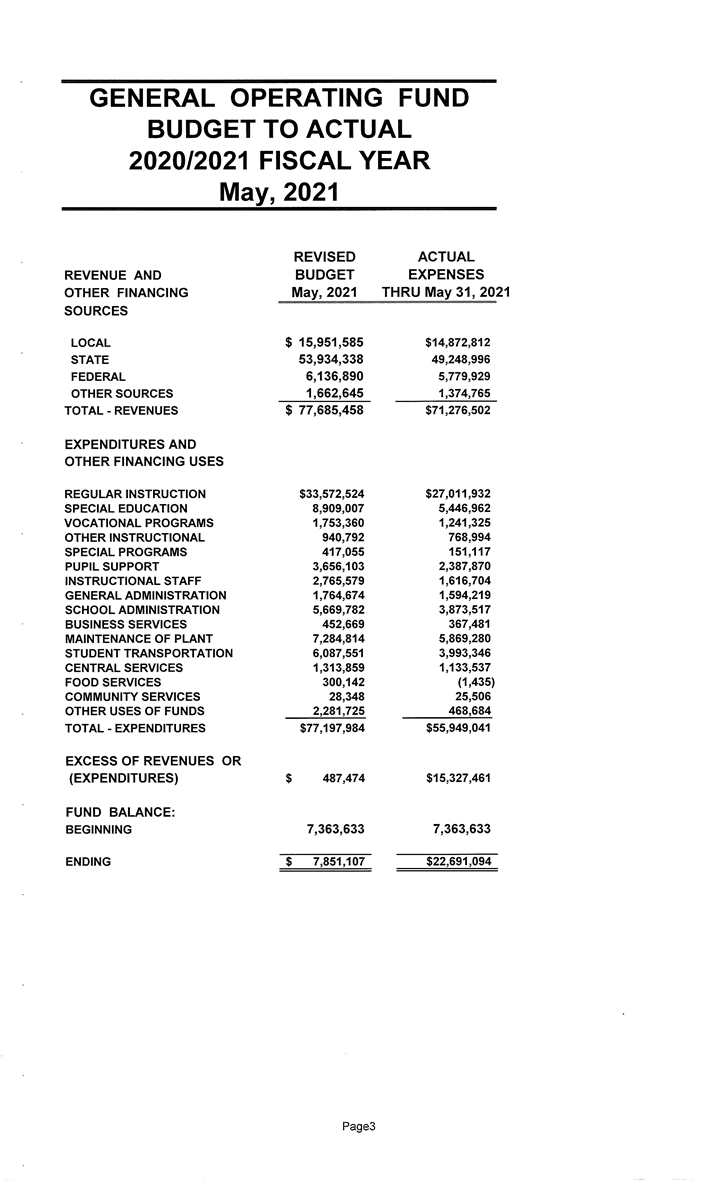 Tim Ward, Finance Director reported to the Board on the tax supplement amounts and that the mailing date will be on June, 18th. Mr. Ward also explained to the Board about the new centralized sales tax proposal if it passes.